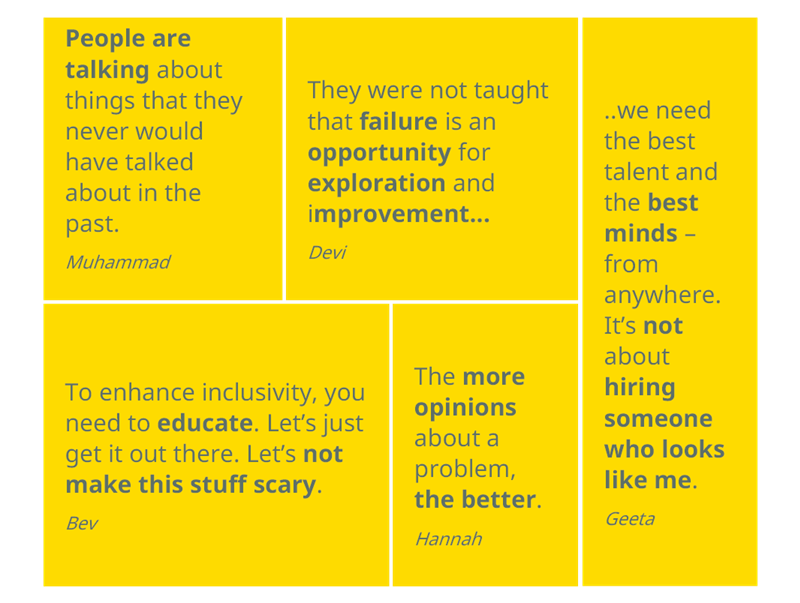 Creating a safe place where employees can share their stories helps Ultra to learn more about Diversity, Equity and Inclusion issues and start positive conversations about topics like unconscious bias, the value of diverse teams etc.